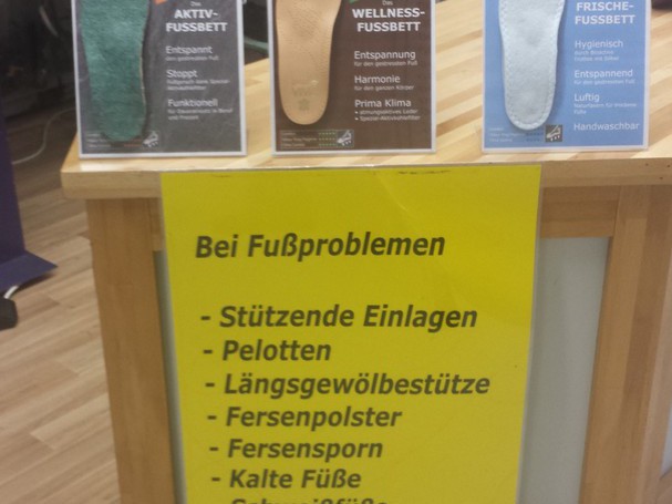 Selbst für Ihre ausgelatschten Lieblingsschuhe finden wir eine Lösung. Sie haben Schmerzen in Füßen, Gelenken, Knien, Beinen? Bitte sprechen Sie uns darauf an. Die meisten Probleme lassen sich durch